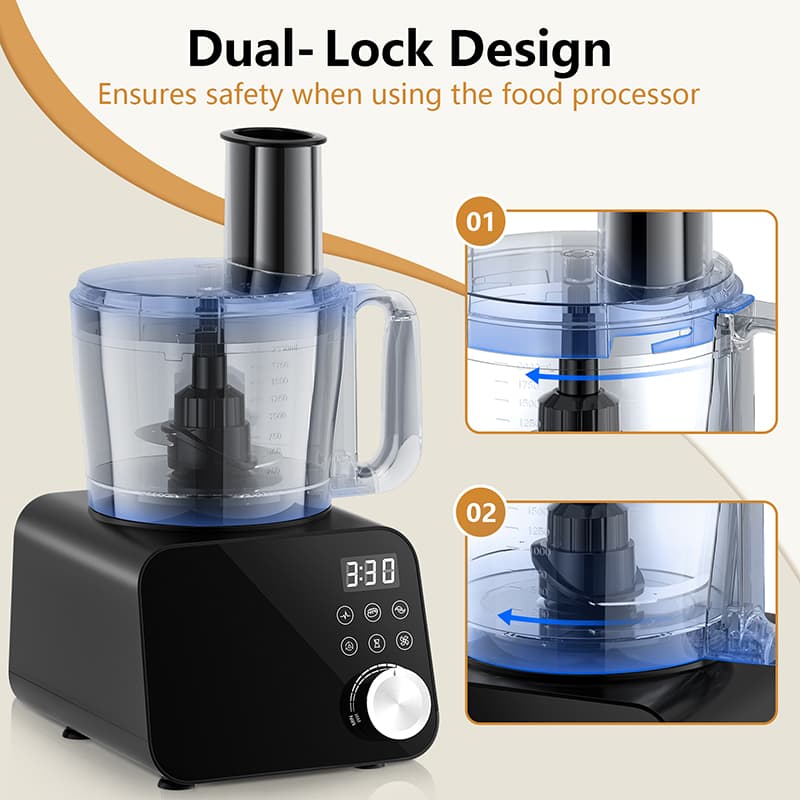 Shenzhen, ChinaCrafted with high-quality materials, the E03 Food Processor delivers reliable, long-lasting performance. Featuring a stainless steel chopping blade and multiple attachment options for shredding, slicing, and kneading, this appliance is designed to tackle all your food prep needs. The 2.5L processing bowl and stepless speed control provide versatility, while the timer and preset programs make operation seamless. Its compact build ensures it occupies minimal countertop space, while its sleek design adds a modern touch to any kitchen. Efficient and easy to clean, this food processor combines practicality and durability for the ultimate cooking experience.