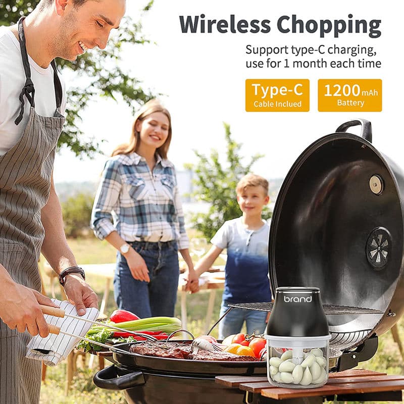 Portable Electric Meat Chopper features a 45W powerful motor and a 1200mAh rechargeable lithium battery with USB charging. One full charge supports up to 35 wireless uses. Equipped with food-grade stainless steel 3-blades for fast and efficient chopping, it operates at under 60dB for quiet performance. With an IPX5 waterproof rating and automatic safety shut-off, it’s both reliable and secure. The creative cup cover keeps food fresh and makes cleaning easy – a perfect kitchen helper!