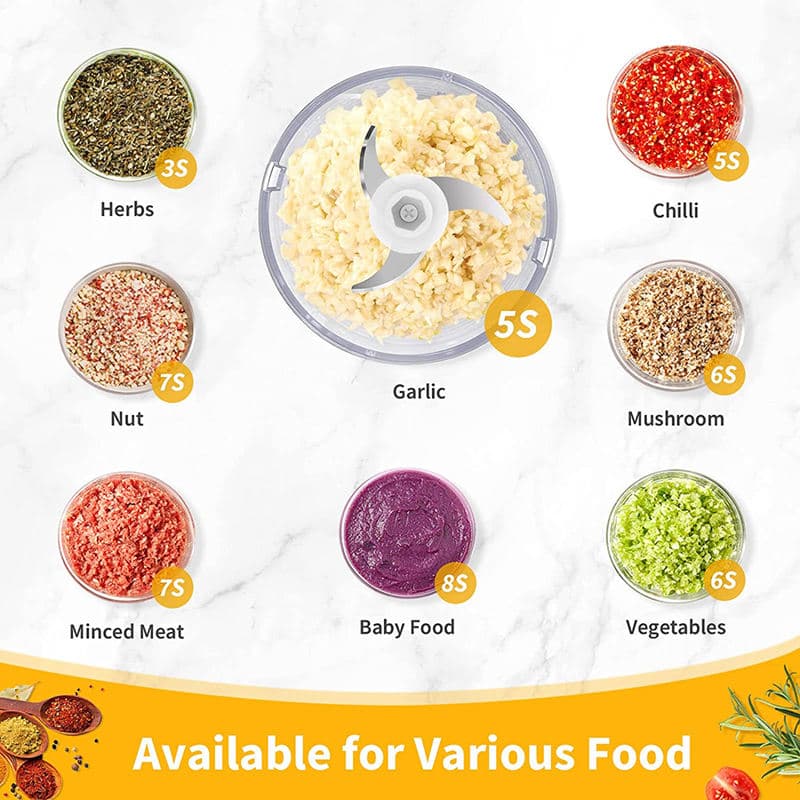 • Powerful & Precise Chopping: Features food-grade stainless steel 3-blades that rotate at high speed, ensuring meat and ingredients are minced evenly and finely in seconds.